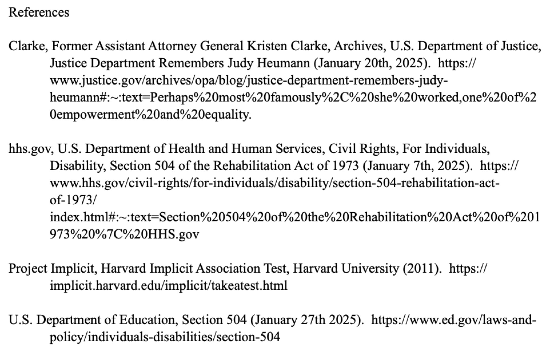 The two courses Social Welfare Policy and Diversity are intricately related, for many reasons that do not require a scholarly background to recognize. I got to learn about Judy Heumann (Clark, 2025), leading the cause in the 504 Sit-In, a 28 day protest, as the media exclaimed "An Occupation Army of Cripples Has Taken over the San Francisco Federal Building" in 1977, to demand that section 504 of the Rehabilitation Act be enforced. Section 504 is a US civil rights law that "prohibits discrimination on the basis of disability in programs and activities that receive federal funding." (U.S. Department of Education, 2025; hhs.gov, 2025) Underscoring the fact that every bit of equality for the underprivileged in The United States has had to be diligently fought for. In Diversity, I was appalled to learn about my own implicit biases as demonstrated to me in the Harvard Implicit Association Test. This test is designed to attempt an objective analysis of an individuals unconscious biases about other groups of people and cultures. (Project Implicit, 2011)